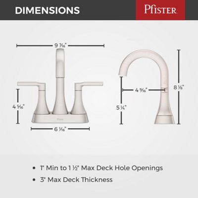 • Trusted since 1910, Pfister Faucets has been a leader in quality plumbing products; all faucets are backed by our Limited Lifetime Warranty, covering finish and function for as long as you own your home