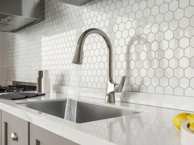 Though technically considered a transitional design that plays well with multiple interior styles, Norden also embodies many of the elements that make up the modern sensibilities of today. Angular edging alongside soft swoops and curves become 3-D art that’s as ergonomic as it is captivating. HydroBlade spray technology makes quick work of post-meal clean up—even if lingering conversation has left you with caked-on leftovers—while Auto-Align secures the 3-function spray head back into place so seamlessly it’s worthy of its own standing ovation. Multi-function spray heads with wipe-clean nozzles equal rave reviews in Stainless Steel, Polished Chrome and Matte Black. Fans of nuanced performance? This one’s for you.